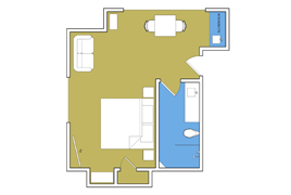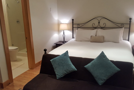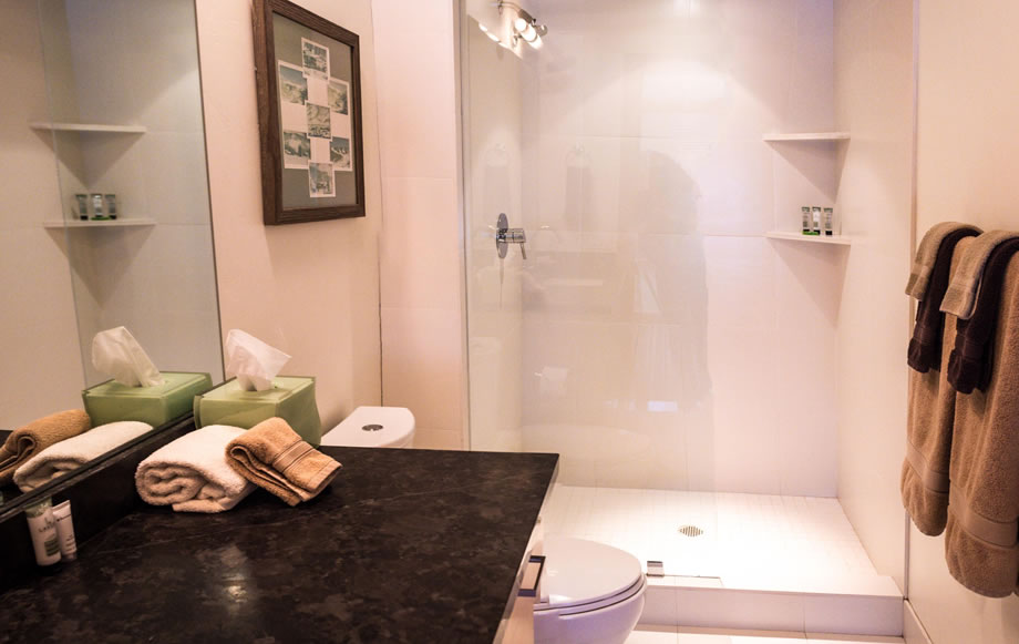 278 sq-ft (50 sq-ft bath 228 sq-ft. living) - King bed with 625 Thread-Count Egyptian cotton sheets, walk-in shower with luxurious bath towels, kitchenette (with mini fridge, microwave, Keurig coffee maker), 42-inch flat screen TV, individually controlled radiant heat, FREE high-speed internet.