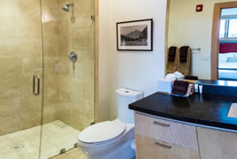 303 sq-ft (55 sq-ft bath 248 sq-ft living) - King bed with 625 Thread-Count Egyptian cotton sheets, walk-in shower with luxurious bath towels, kitchenette (with mini fridge, microwave, Keurig coffee maker), 42-inch flat screen TV, individually controlled radiant heat, FREE high-speed internet.